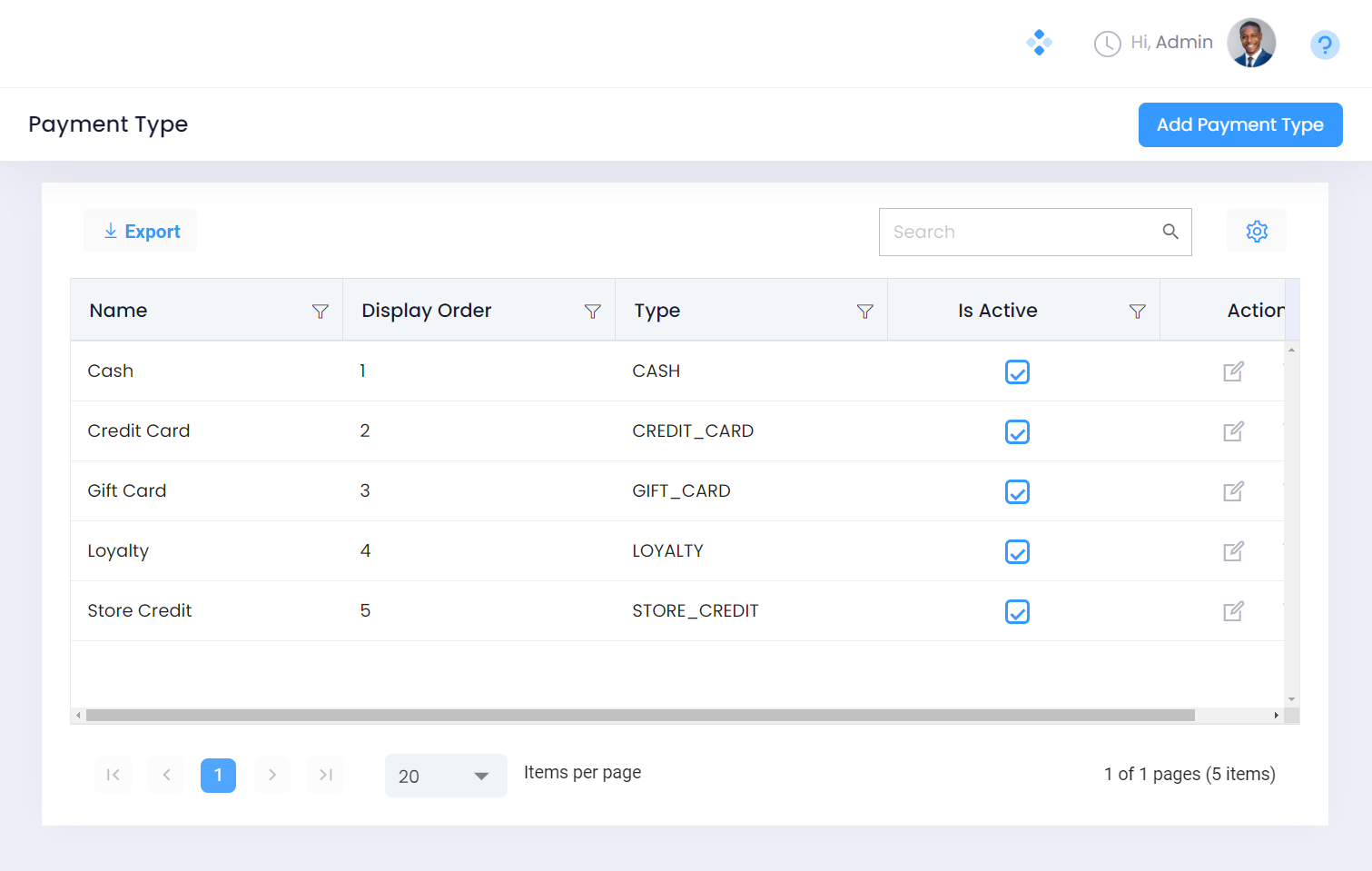 Step 2. Click the Add Payment Type button to open the Create Payment Type screen.