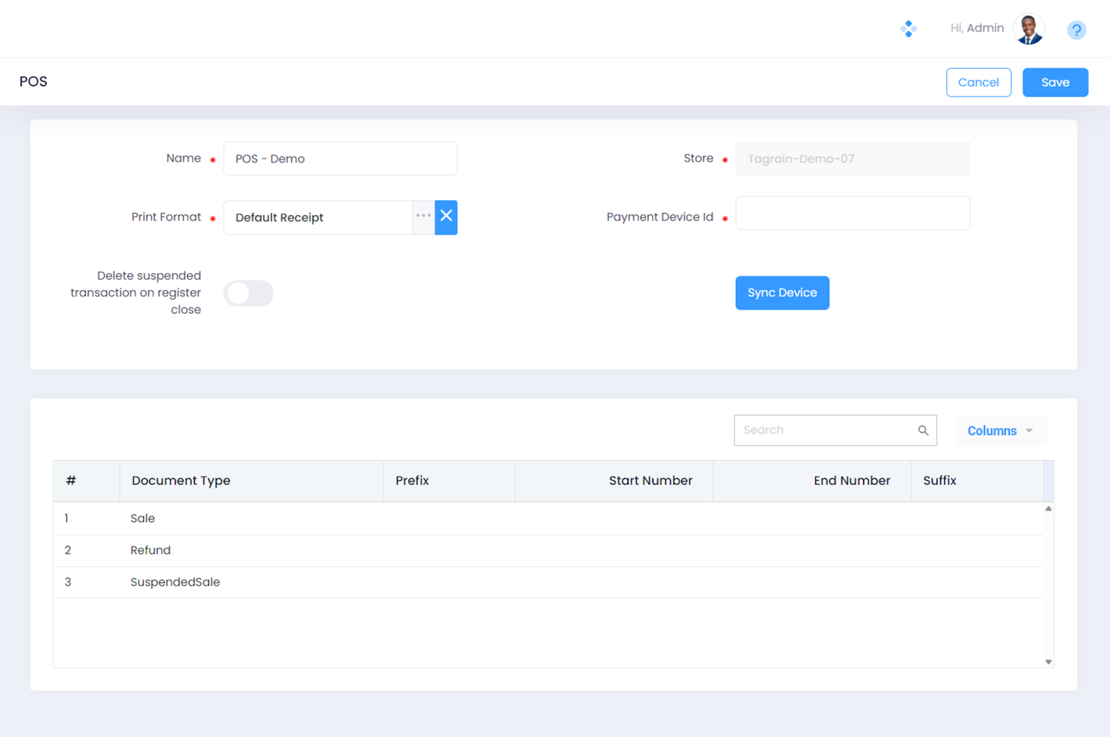 Step 3. Click on the Edit button on the POS List View Screen to open the settings page for the corresponding POS. You should see the Payment Device ID field.