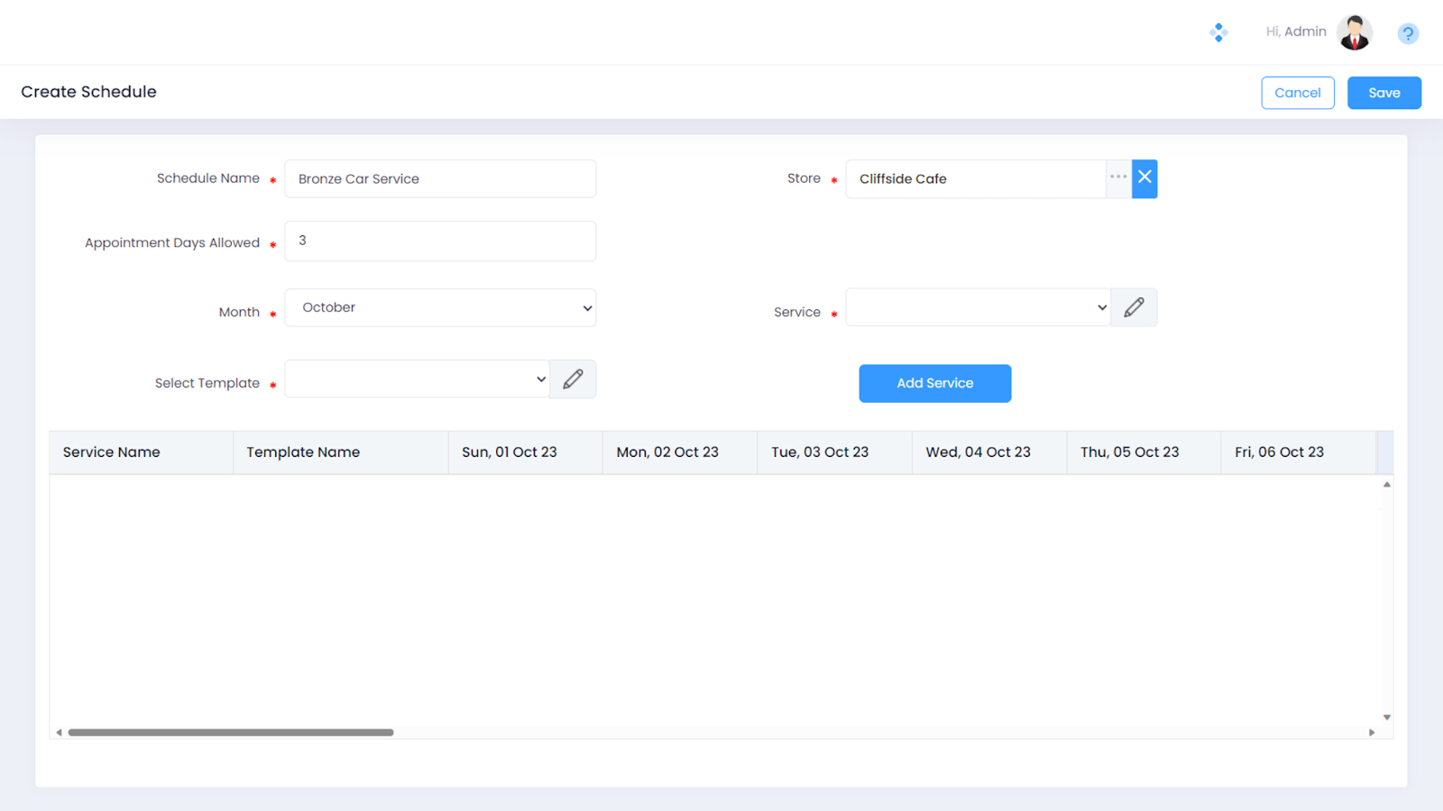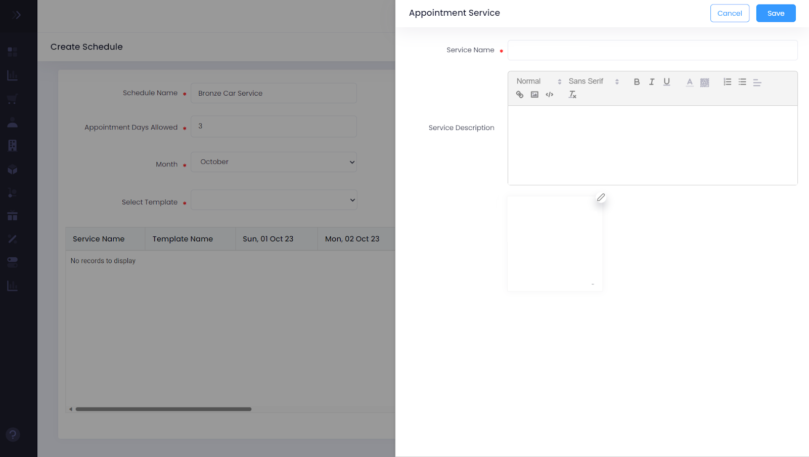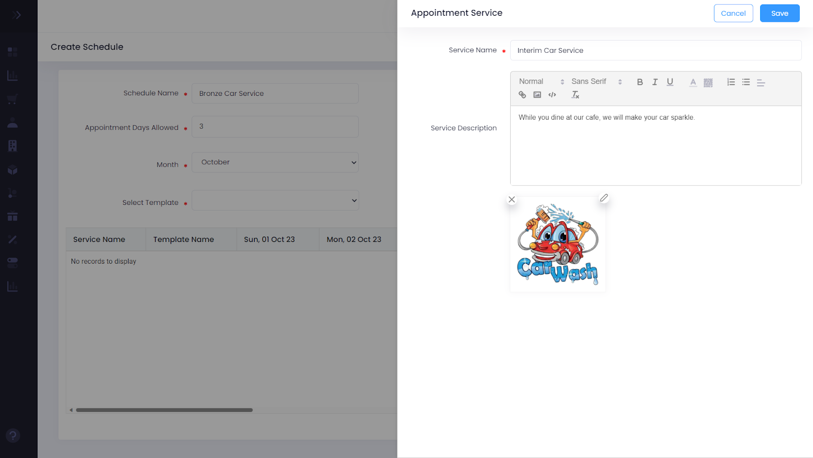 Step 2. Selecting the Create New Service option brings up the Appointment Service screen. (As Shown in the Image below)