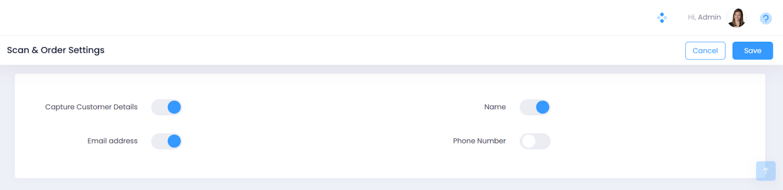 This setting pertaining to Customer Data Capture can be configured on the Scan and Order Setting page under General Settings. See: General Settings