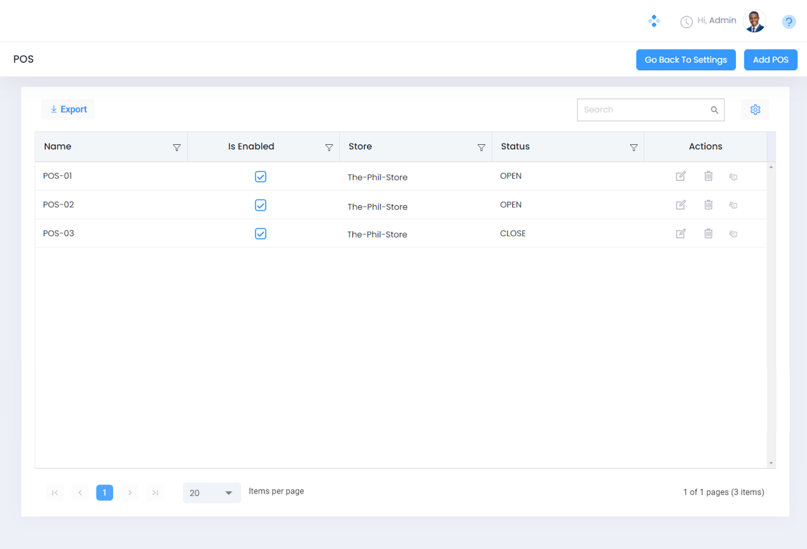 Click on the Edit button on the POS List View Screen to open the settings page for the corresponding POS.
