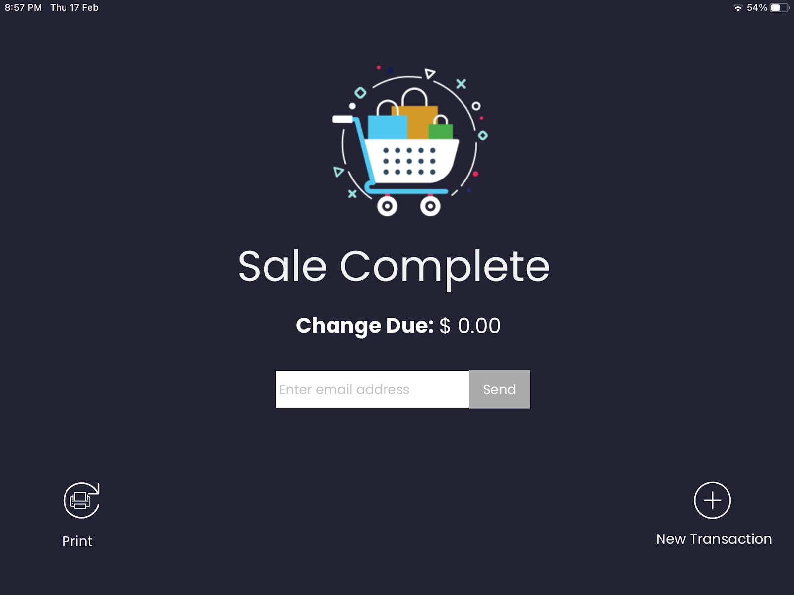 Once you are done with the Table selection, select a payment method to process the payment. This will bring up the Sale Complete screen.