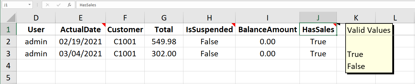 Has Sales | This field is used to indicate if the sale transaction includes sale items. The available values are: True and False. |