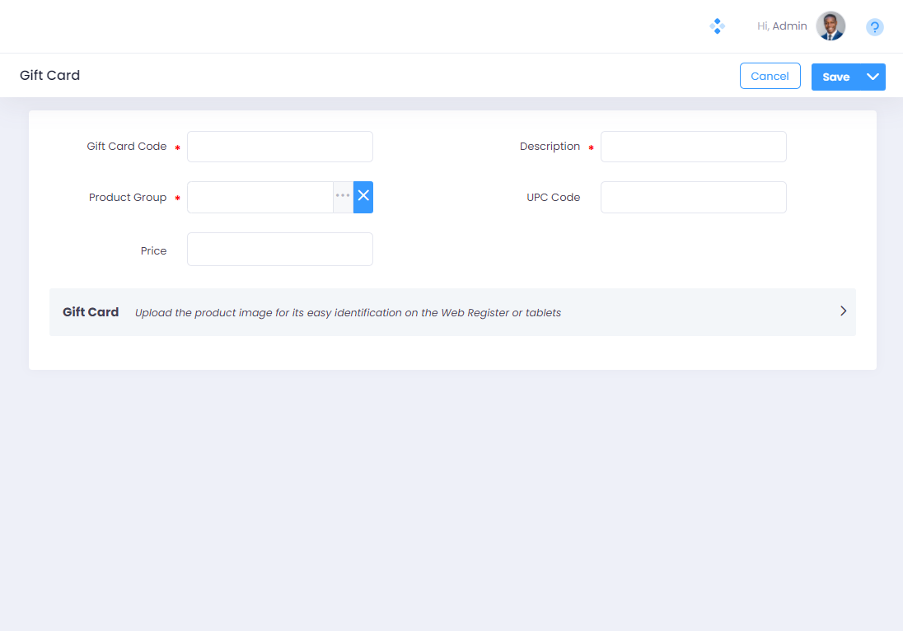 Click on the […] to select a product group for the gift card to belong to. This will help in better analysis of transactions which have a Gift Card as a payment type.