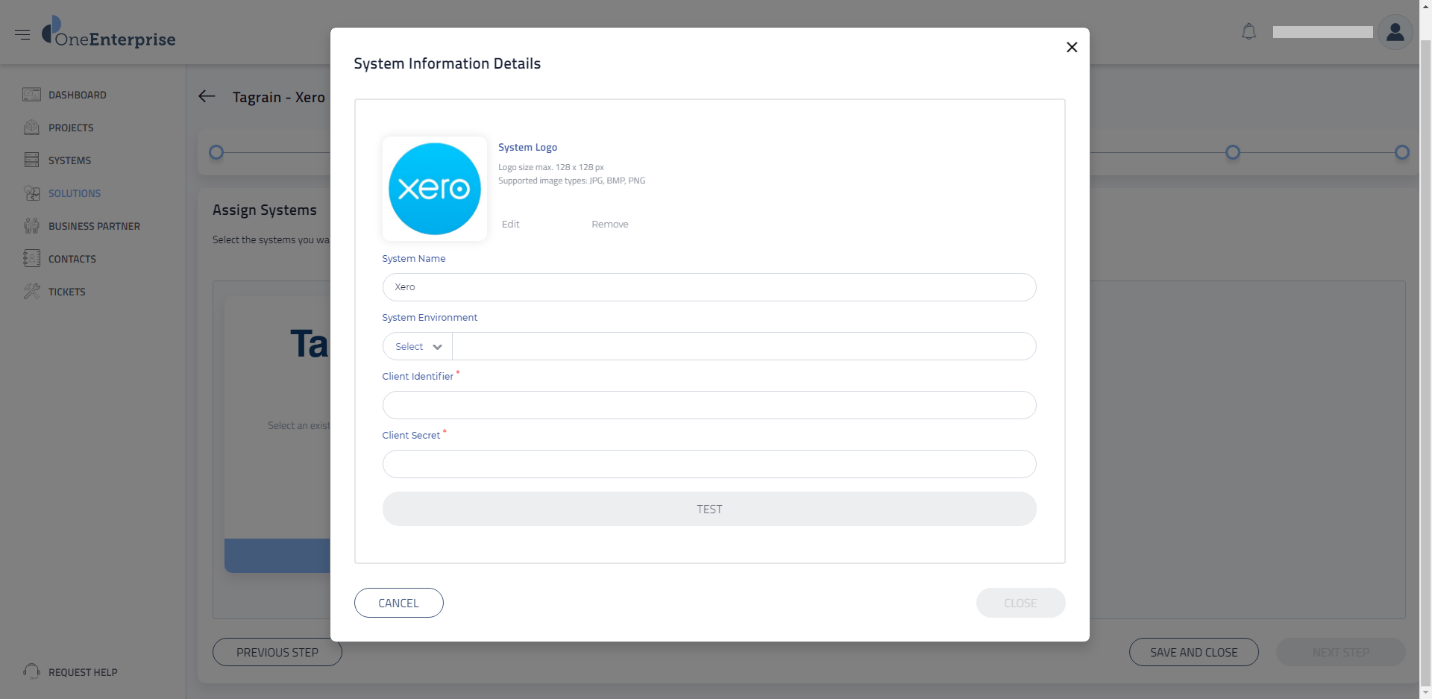 The retailer needs to supply his email address and the password for OneEnterprise and click the “Login” button. This will bring up the “OneEnterprise” dashboard page. On the One Enterprise dashboard page he will see all his recent solutions listed including his Tagrain-Xero solution. Before he clicks on the “Set It Up” button he needs to ensure that he has the following piece of information handy.