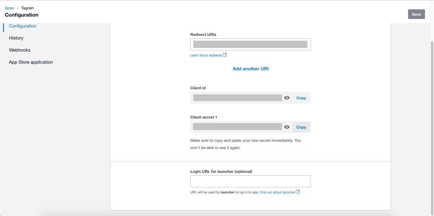 Note: The best practice is to save the settings displayed on this page and store it on a network drive accessible only to the administrators or the manager. The Client Secret is private and confidential. It should not be shared.