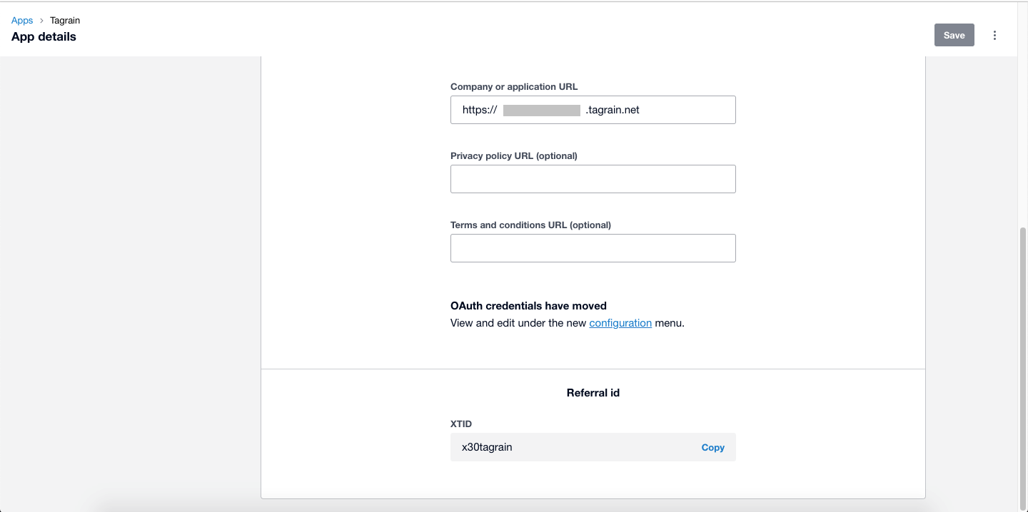 Step 5. Once you have filled in the required information, you need to click on the “Create App” button. The application will redirect you to the “App details” page. This screen displays information critical to your deployment like the Company or Application URL, Privacy Policy URL, Terms and Condition URL, and the Referral ID.