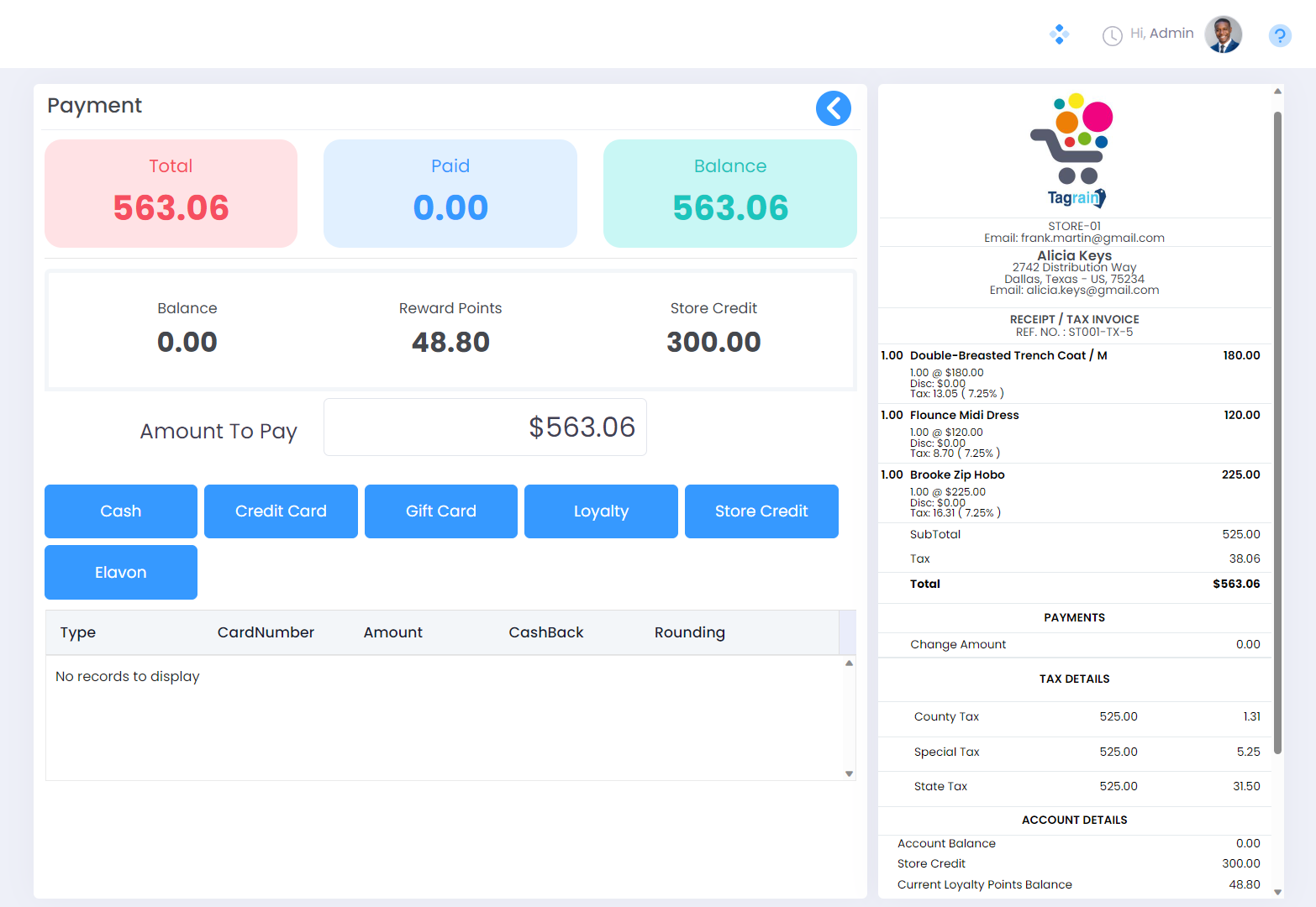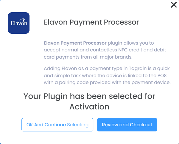 Elavon Payment Processor plugin is a software module that seamlessly integrates with Tagrain POS and allows you to offer a quick, seamless and secure payment experience to your customers. Once set up, cashiers can take credit and debit card payments from customers at the POS using the Elavon Payment Device. This integration helps your cashier by removing the need to manually enter the amount and card details at the POS.