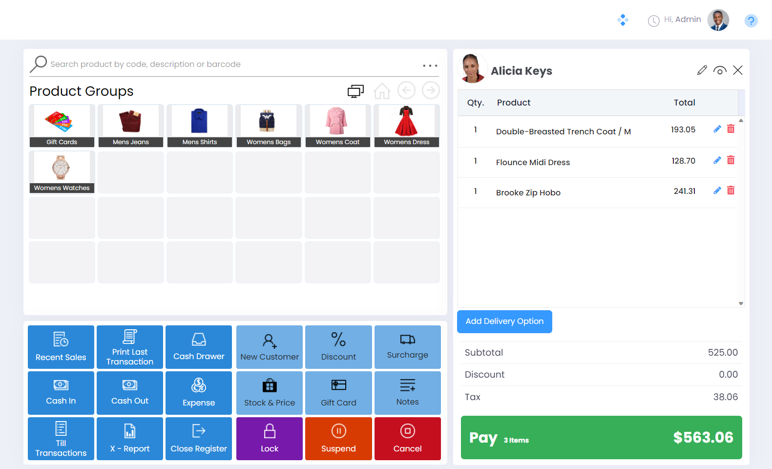 Scan a few products to the transaction grid and click the Pay button to reach the Payment screen.