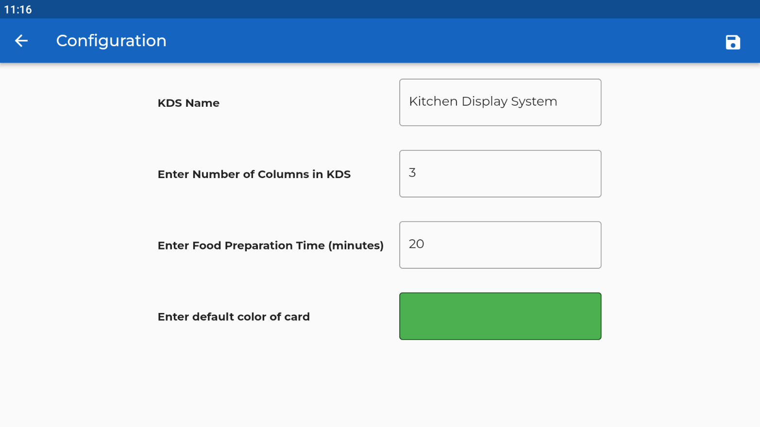 Step 9. Click the Configuration option on the Sub Menu to open the Kitchen Display System configuration screen.