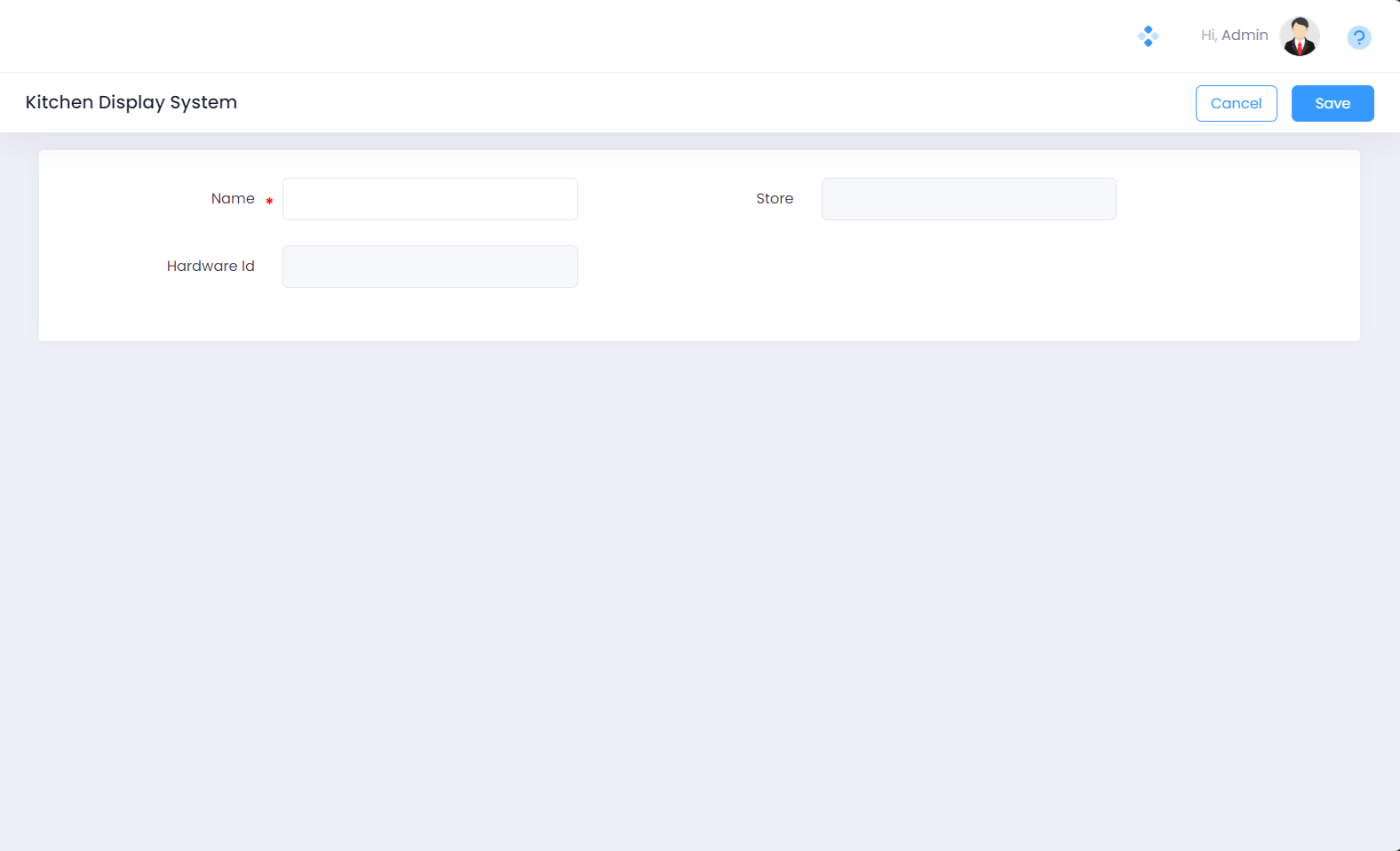 Step 2. Click the Add Kitchen Display System button to open the Kitchen Display System configuration screen.