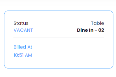 Table View is a feature in Tagrain that allows you to view the table status. It tells you whether the Table is vacant or occupied.