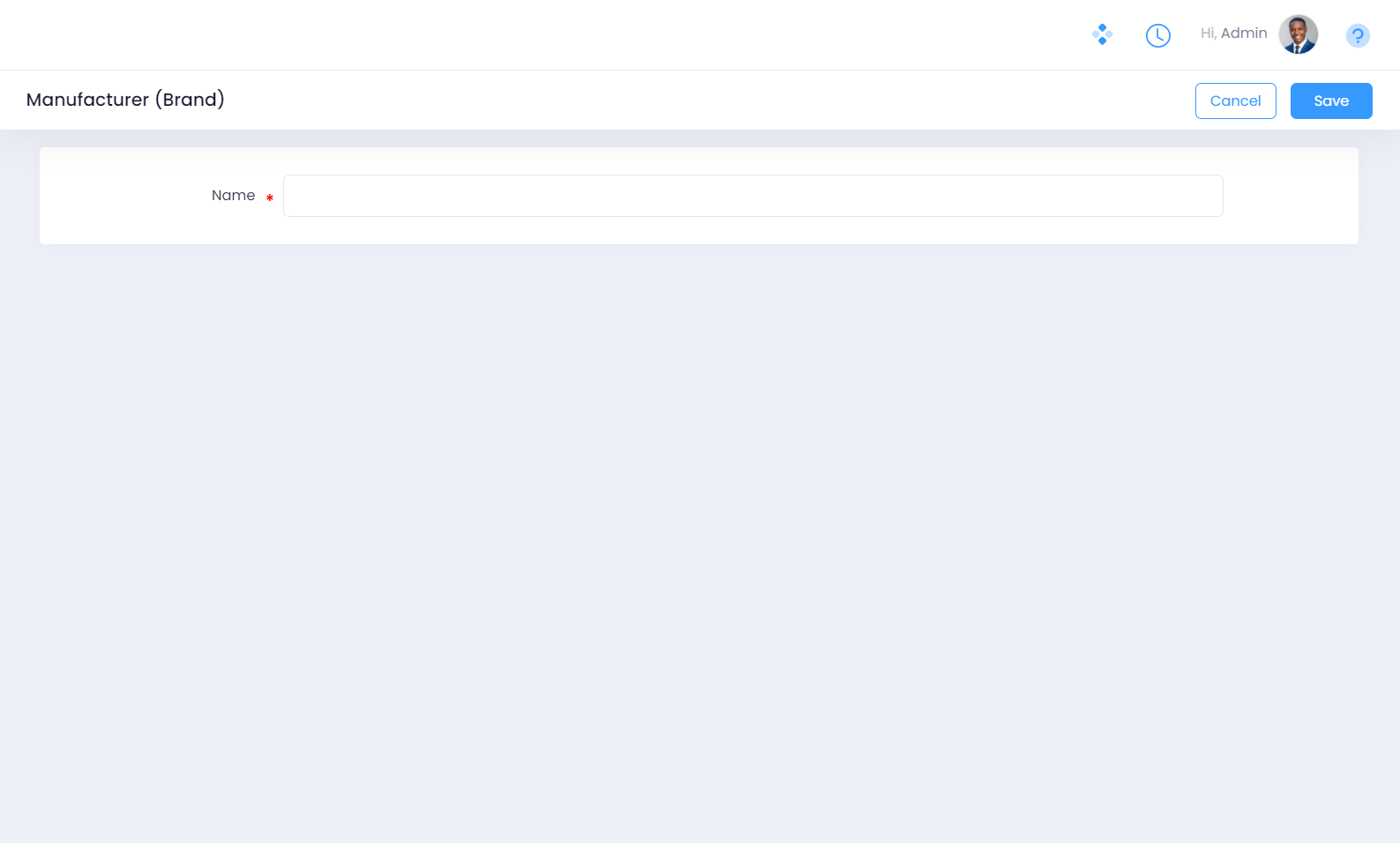 Once you have finished creating the Manufacturer (Brand), you can choose to either add the record by clicking on the save button or choose to cancel by clicking the cancel button.