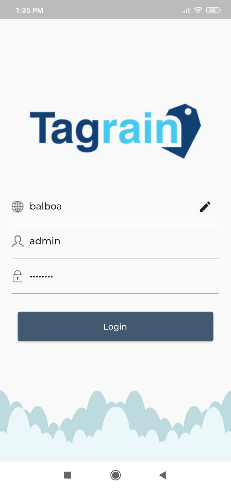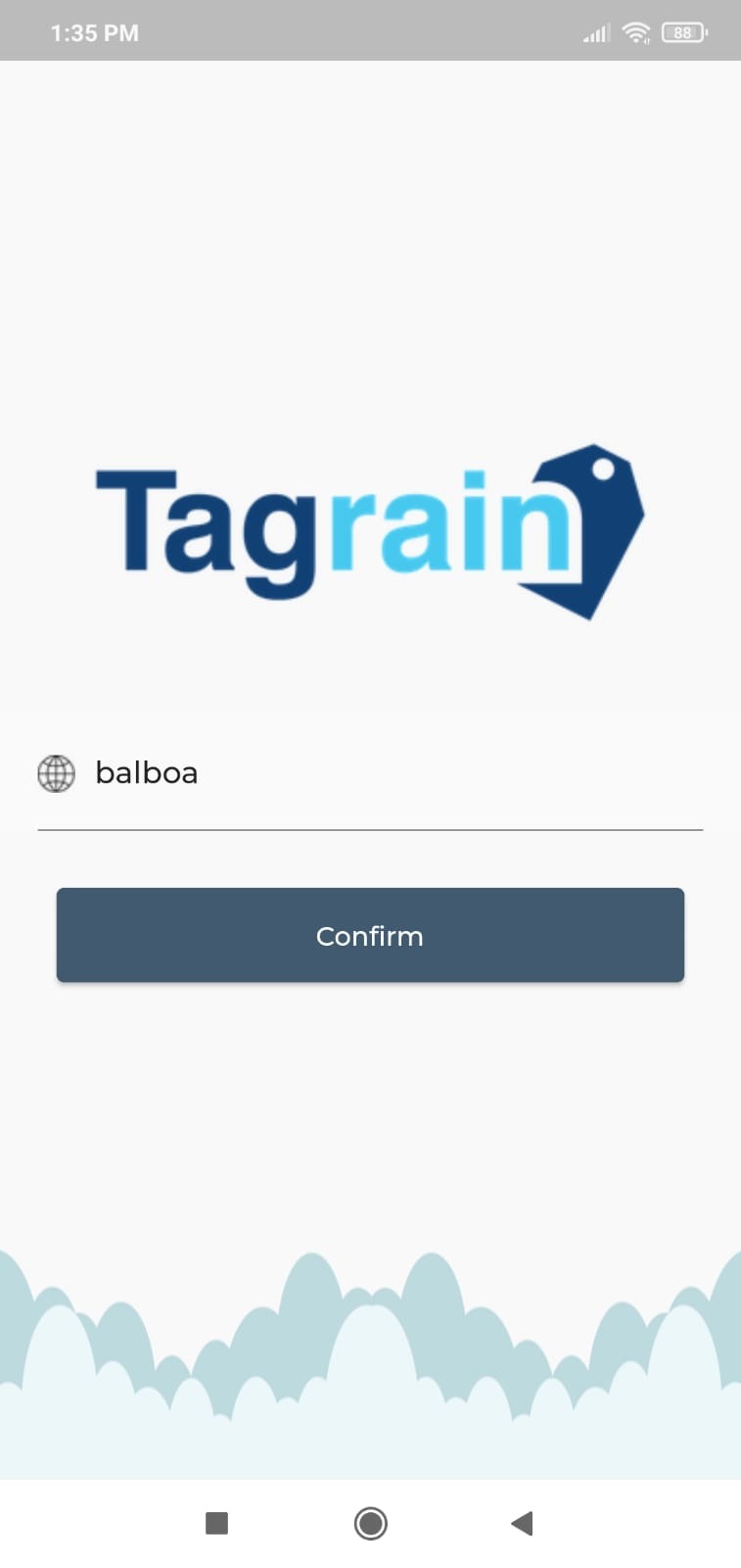 Step 1. Tap on the Tagrain Handheld app icon on the Home Screen to launch the application and specify the Business Name. We have specified balboa as the Business Name. This is the first part of your Tagrain Url, so in this case, we would access Tagrain as balboa.tagrain.net.