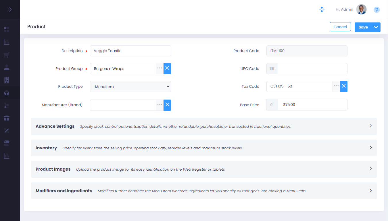 Note: If this modifier is stock controlled, it’s stock will be reduced by the quantity (mentioned in the Qty column) when this menu item is sold on the POS.