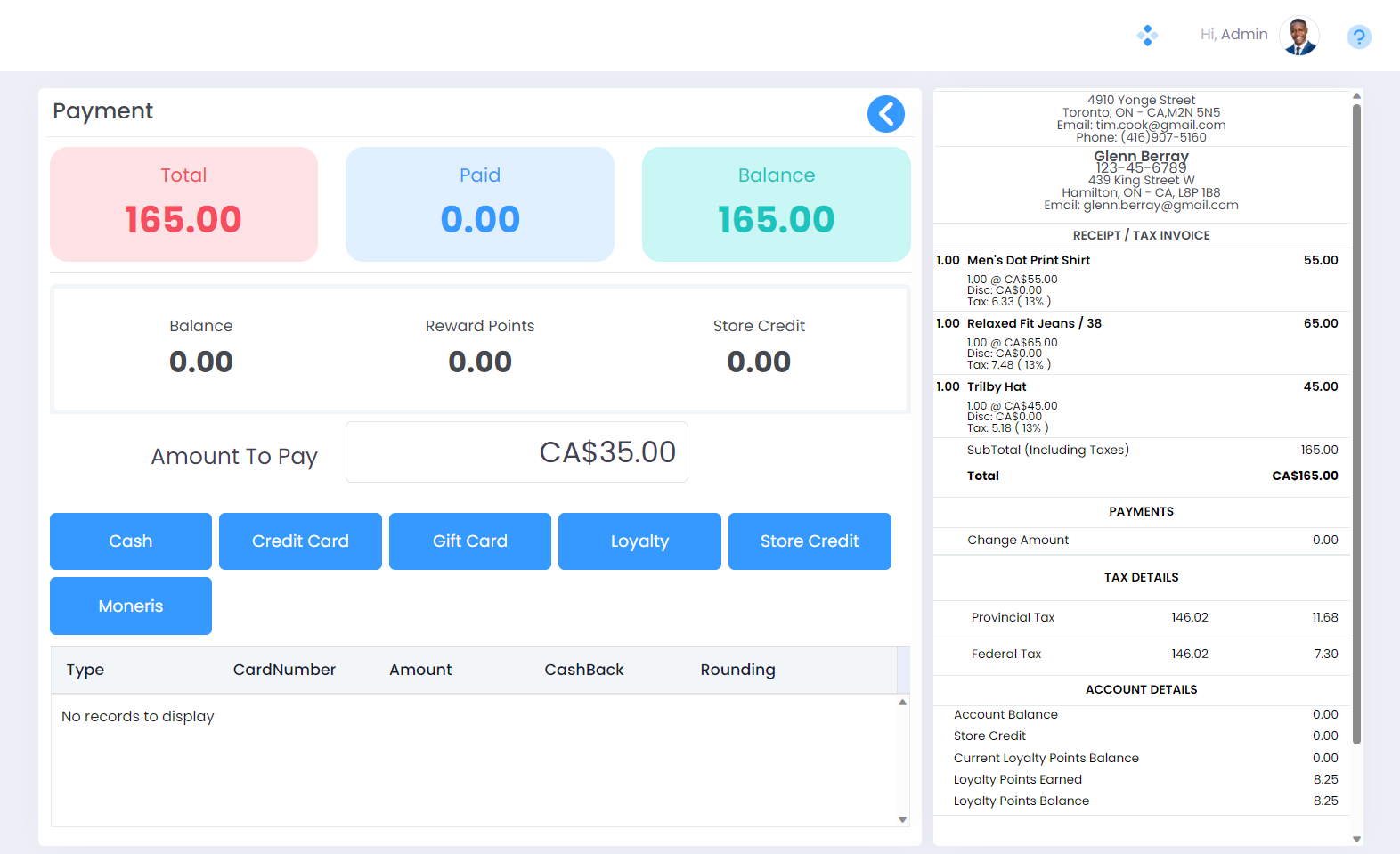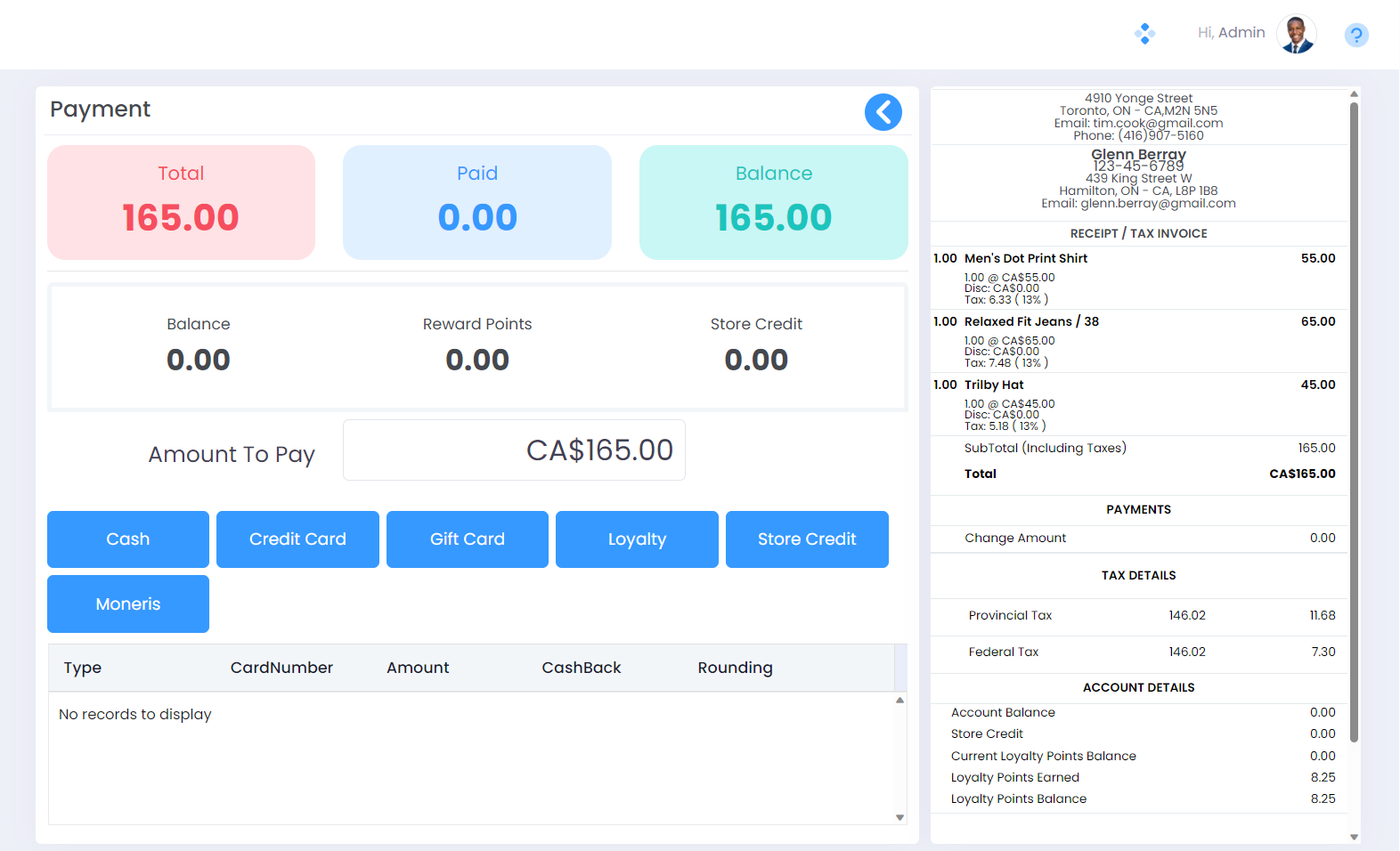 In the section below, we will cover the steps explaining how to receive credit and debit card payments from a customer using Moneris as the Payment Type.