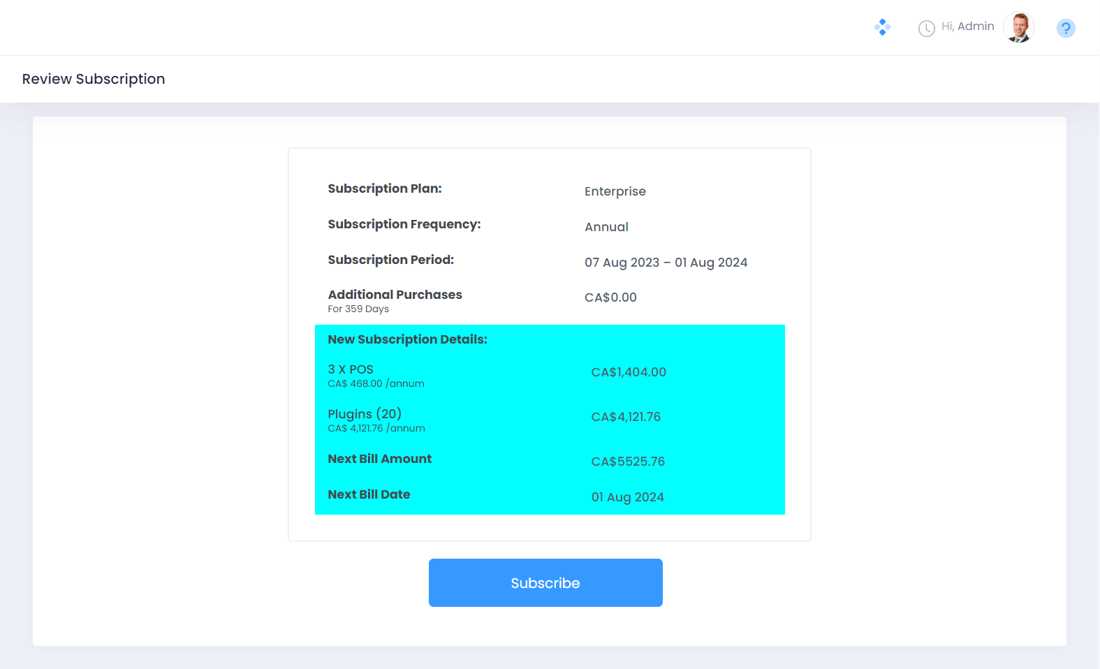 Click the Review & Checkout button to proceed to the Purchase Subscription page.