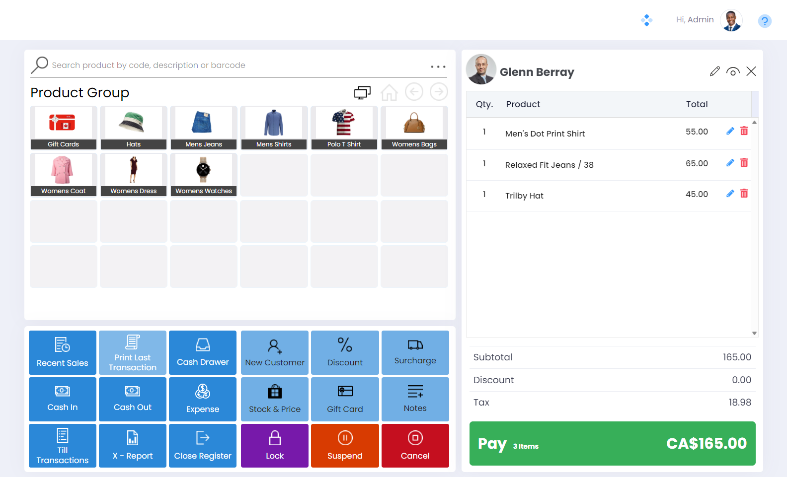 Scan a few products to the transaction grid and click the Pay button to reach the Payment screen.