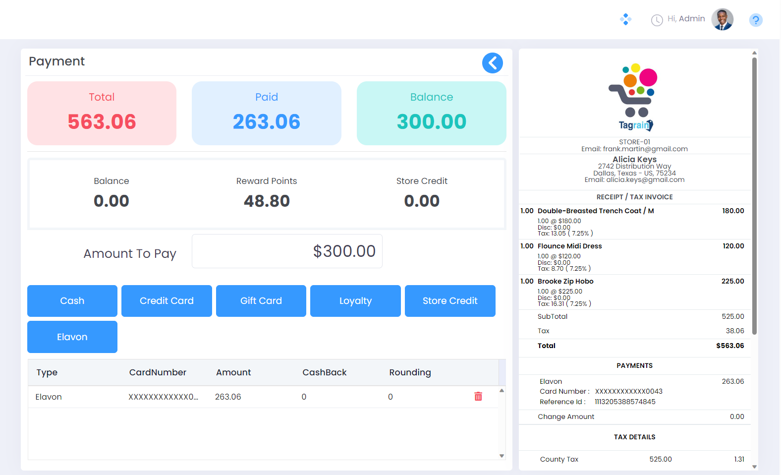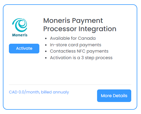 Moneris Payment Processor plugin is a software module that seamlessly integrates with Tagrain POS and allows you to offer a quick, seamless and secure payment experience to your customers. Once set up, cashiers can take credit and debit card payments from customers at the POS using the Moneris Payment Device. This integration helps your cashier by removing the need to manually enter the amount and card details at the POS.