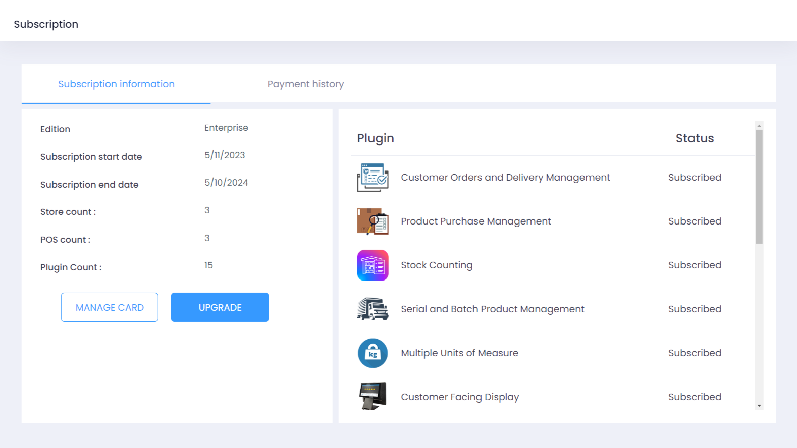 Step 2. On the Subscription screen that opens, click the Upgrade button to reach the Purchase Subscription page.