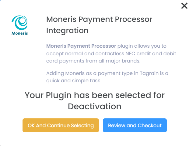 If for some reason, you no longer require the Moneris Payment Processor plugin, Tagrain makes it simple by allowing you to deactivate the plugin. Upon deactivation: