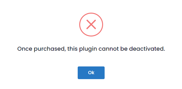 At the time of activating this plugin, the application warns the user that once activated, the plugin cannot be deactivated.