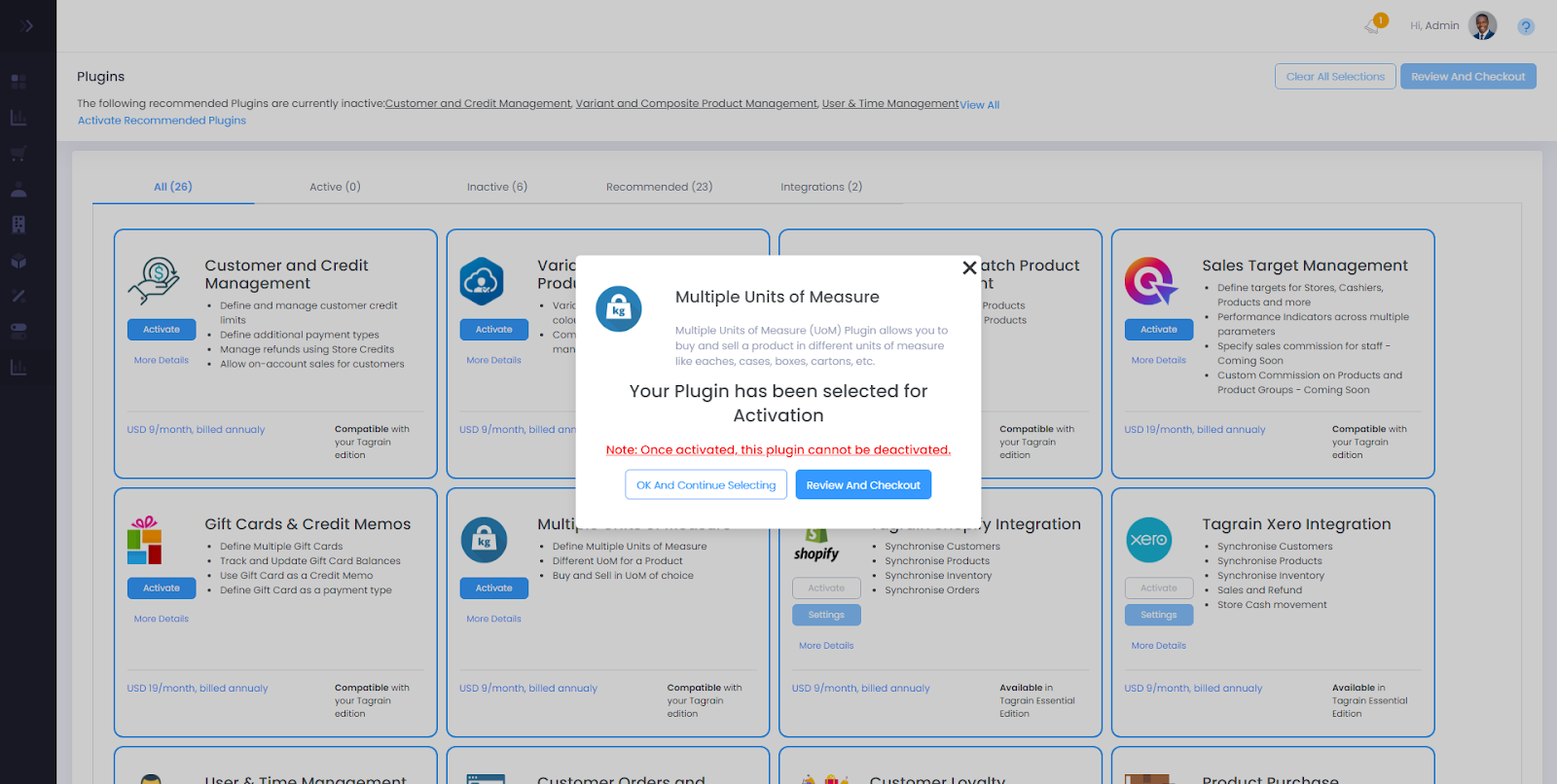 In this section, we will look at how to activate the “Multiple Units of Measure” Plugin in Tagrain.
