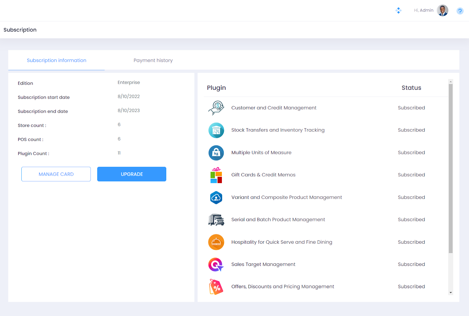 Number of stores considered for the New Subscription pricing is mentioned below every plugin that has been selected for activation