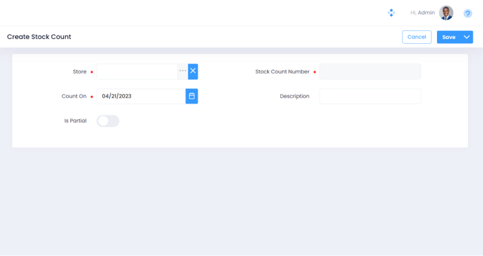 Step 4. Specify the Stock Count Number. This number appears on the Stock Count Document. This number can be used as a reference and helps in reporting. This field is mandatory.