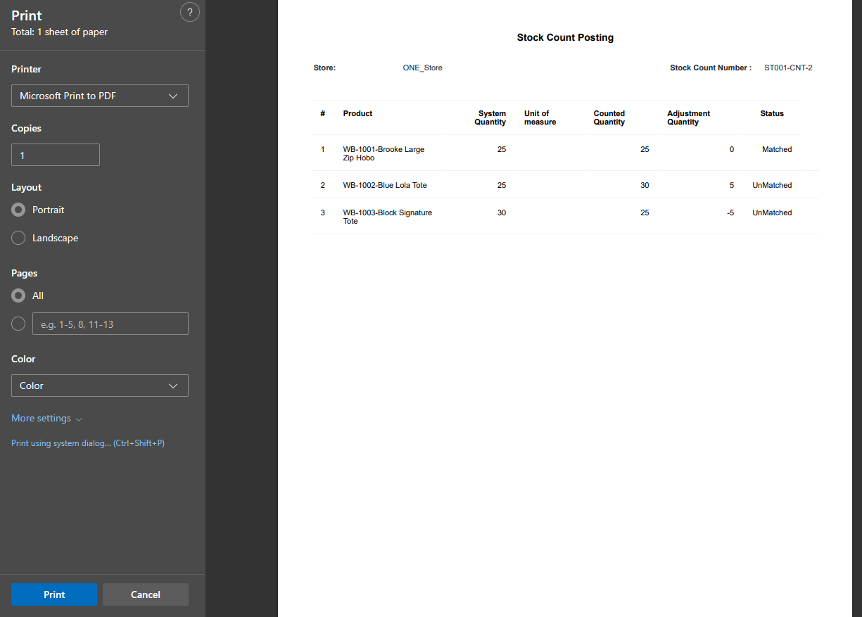 You can click the Print button to print the Stock Posting Document. A sample screenshot is pasted below.
