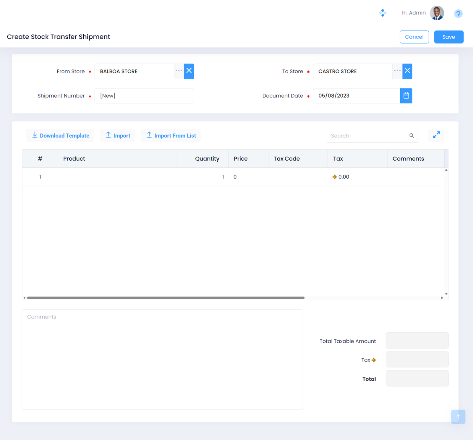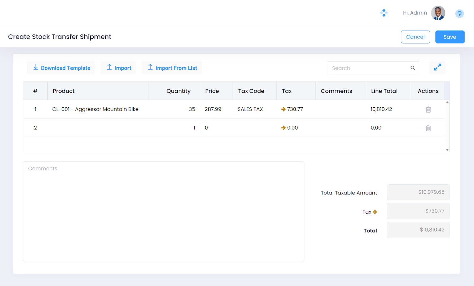 Step 7. Click the Add Stock Transfer Shipment button to open the Create Stock Transfer Shipment Screen.