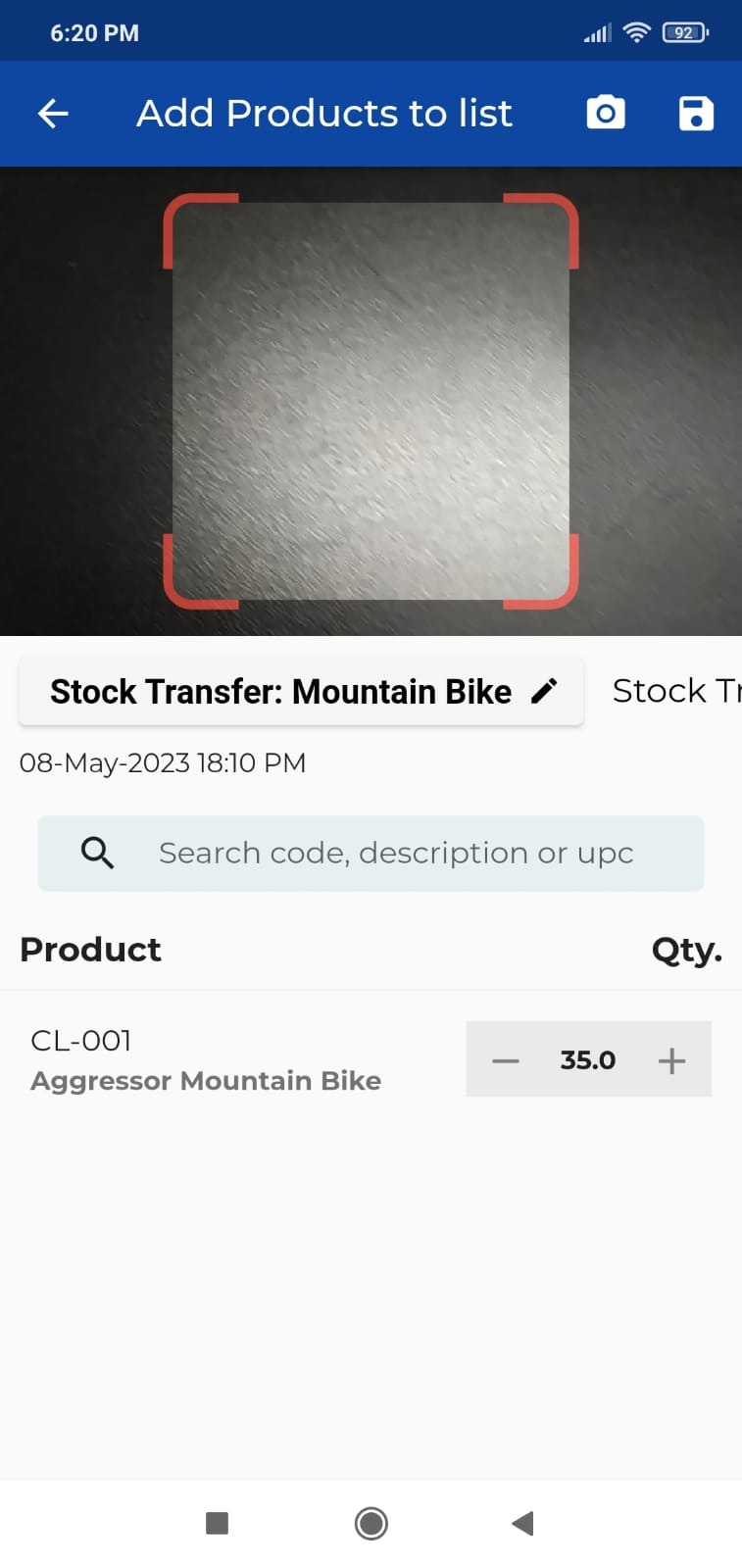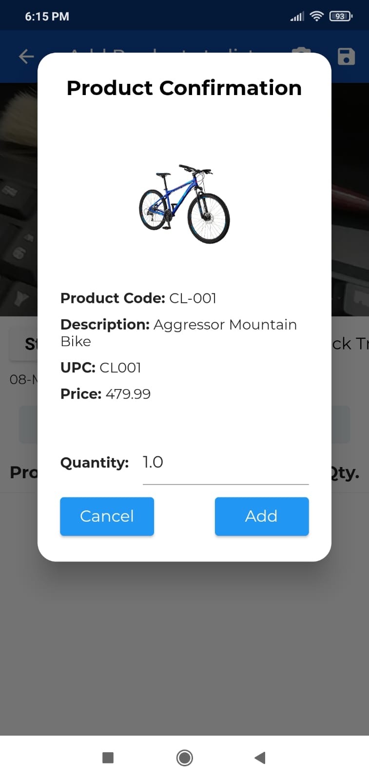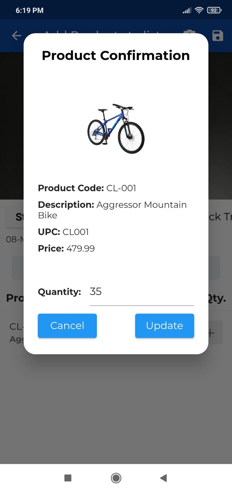 Now, if you open the Tagrain Handled device and look for the Aggressor Mountain Bike product, you should see 50 quantities against the Aggressor Mountain Bike product.