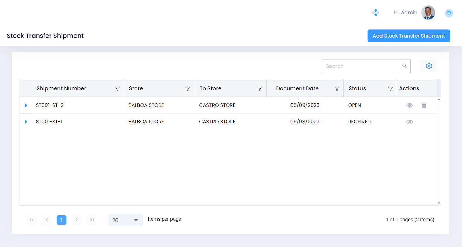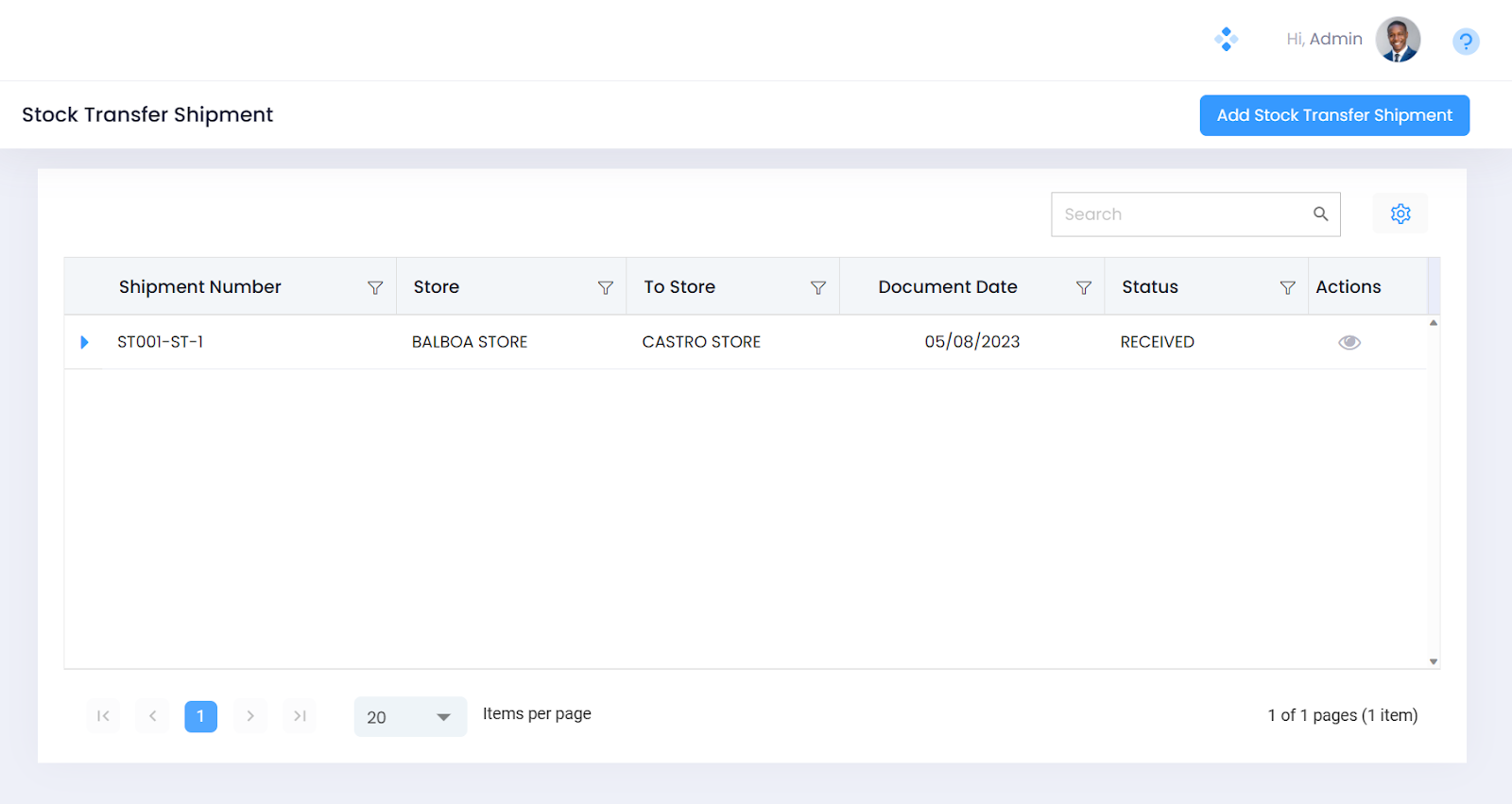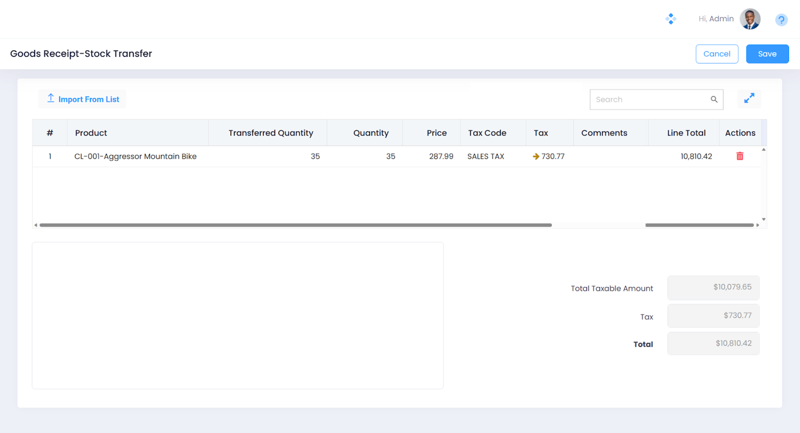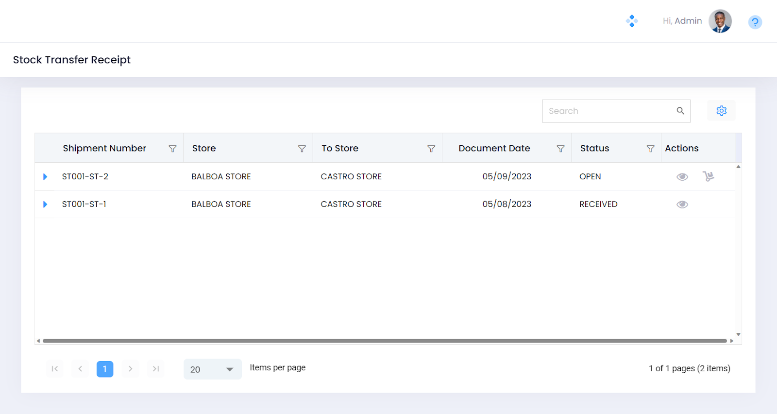Step 13. Navigate to Home > Inventory Transactions > Stock Transfer Receipt to open the Stock Transfer Receipt List View Screen.