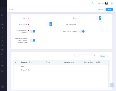Once you have completed the setups for the POS, you can either select the Save icon to save it to the system or cancel to return to the previous screen