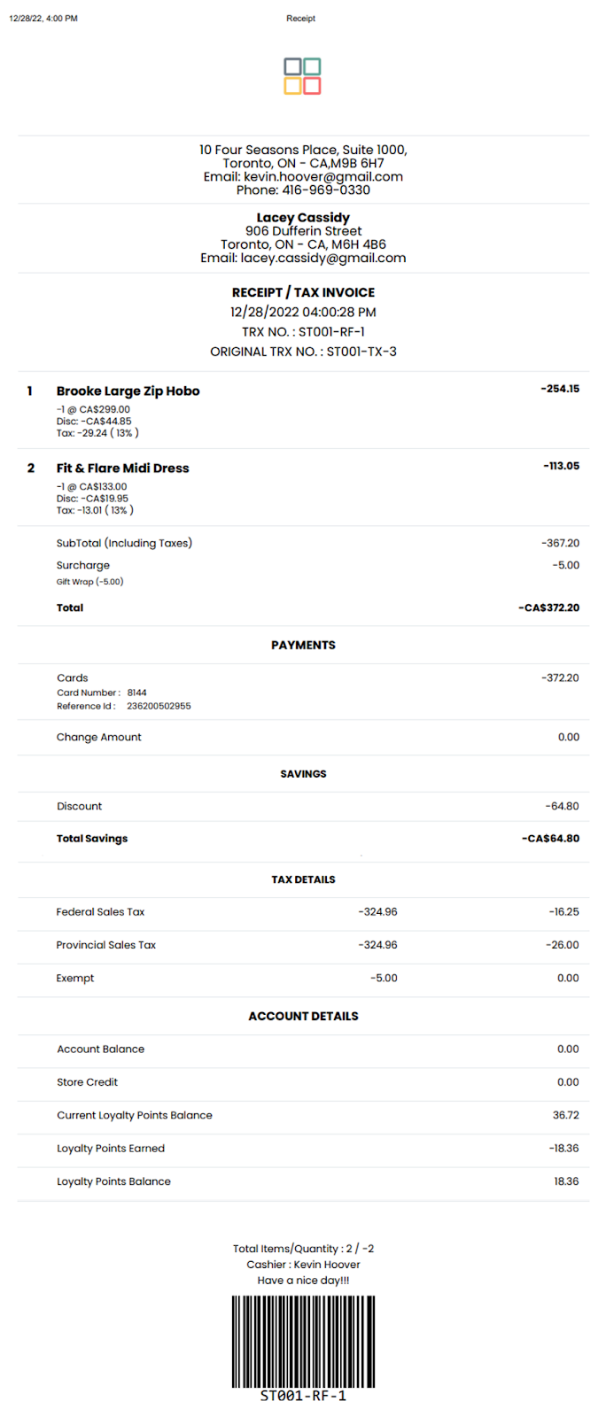 Click OK to complete the refund. Upon successful refund a transaction receipt is generated which can be printed.