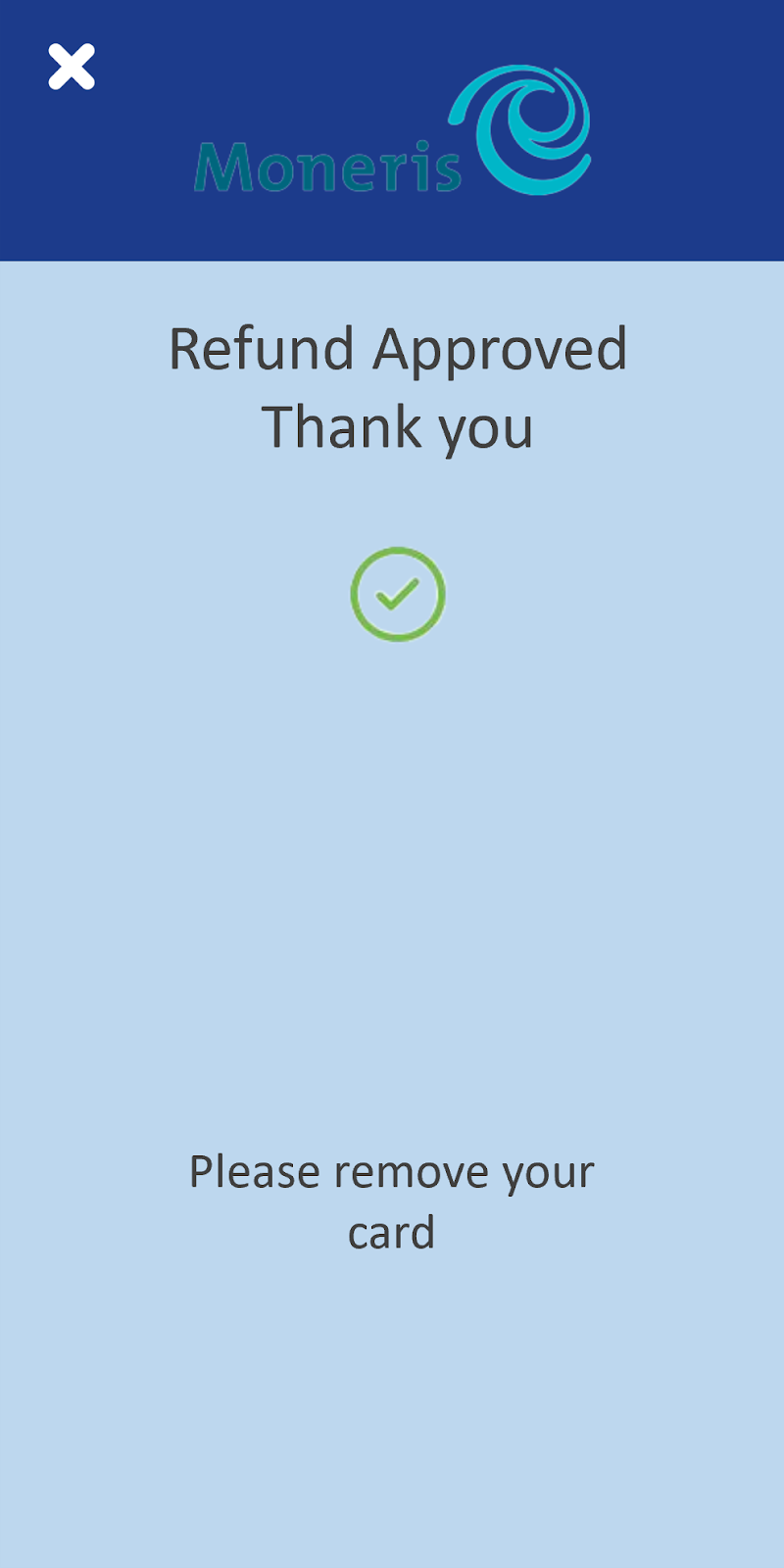 In this illustration the entire amount of $165 has been refunded using the Moneris Payment Processor. A refund sale transaction receipt is printed when the refund is successfully processed.