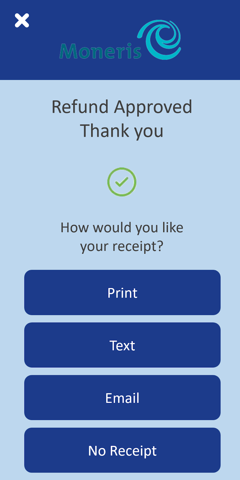 Selecting the No Receipt option on the Moneris Payment Device will display the following pop up screen on the POS terminal.