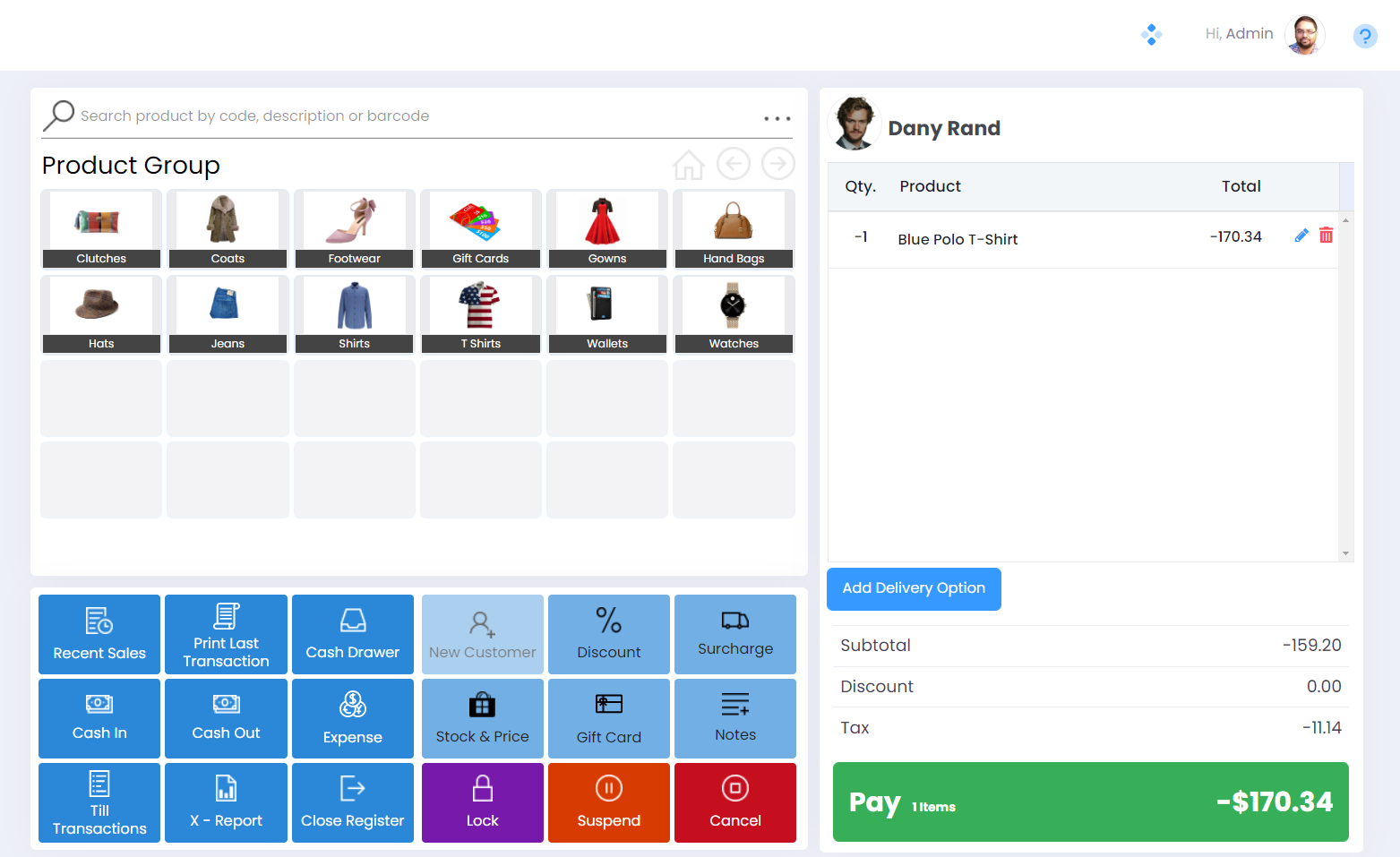 Let’s say, Dany Rand came back to the store asking for a refund for the Blue Polo T Shirt. The screen below depicts a refund processed for Dany Rand.