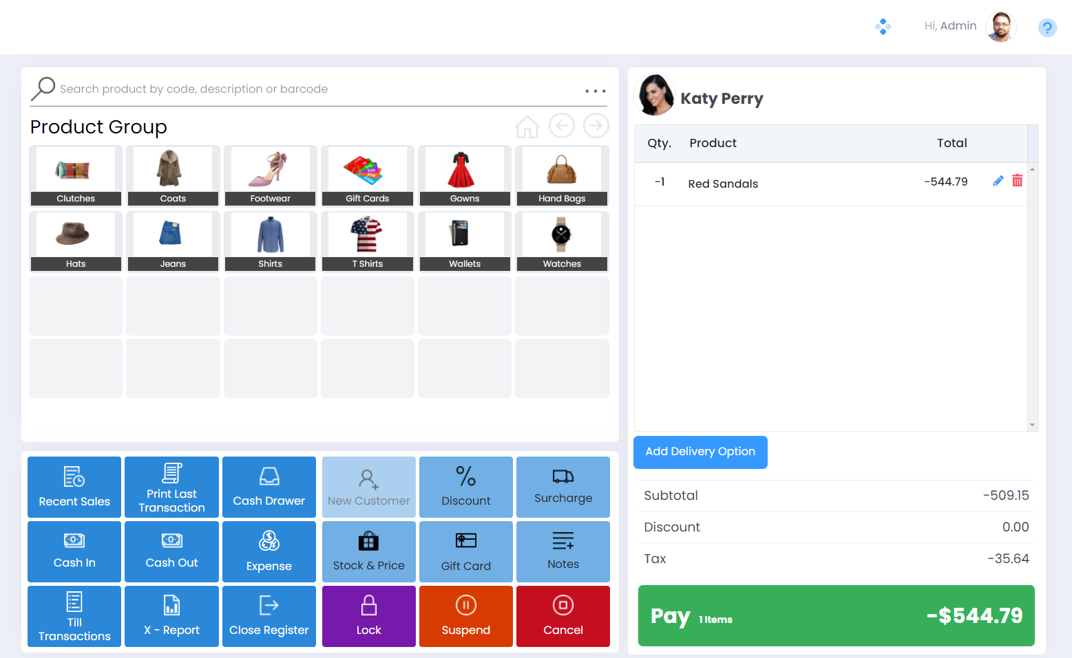Let’s say, Katy Perry came back to the store asking for a refund for the Red Sandal. The screen below depicts a refund processed for Katy Perry.