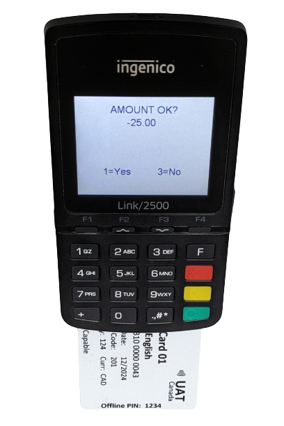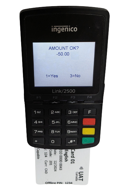 The Elavon Payment Device will display the Refund Amount on the screen. Cashier needs to Press 1 to approve the amount and process the refund.