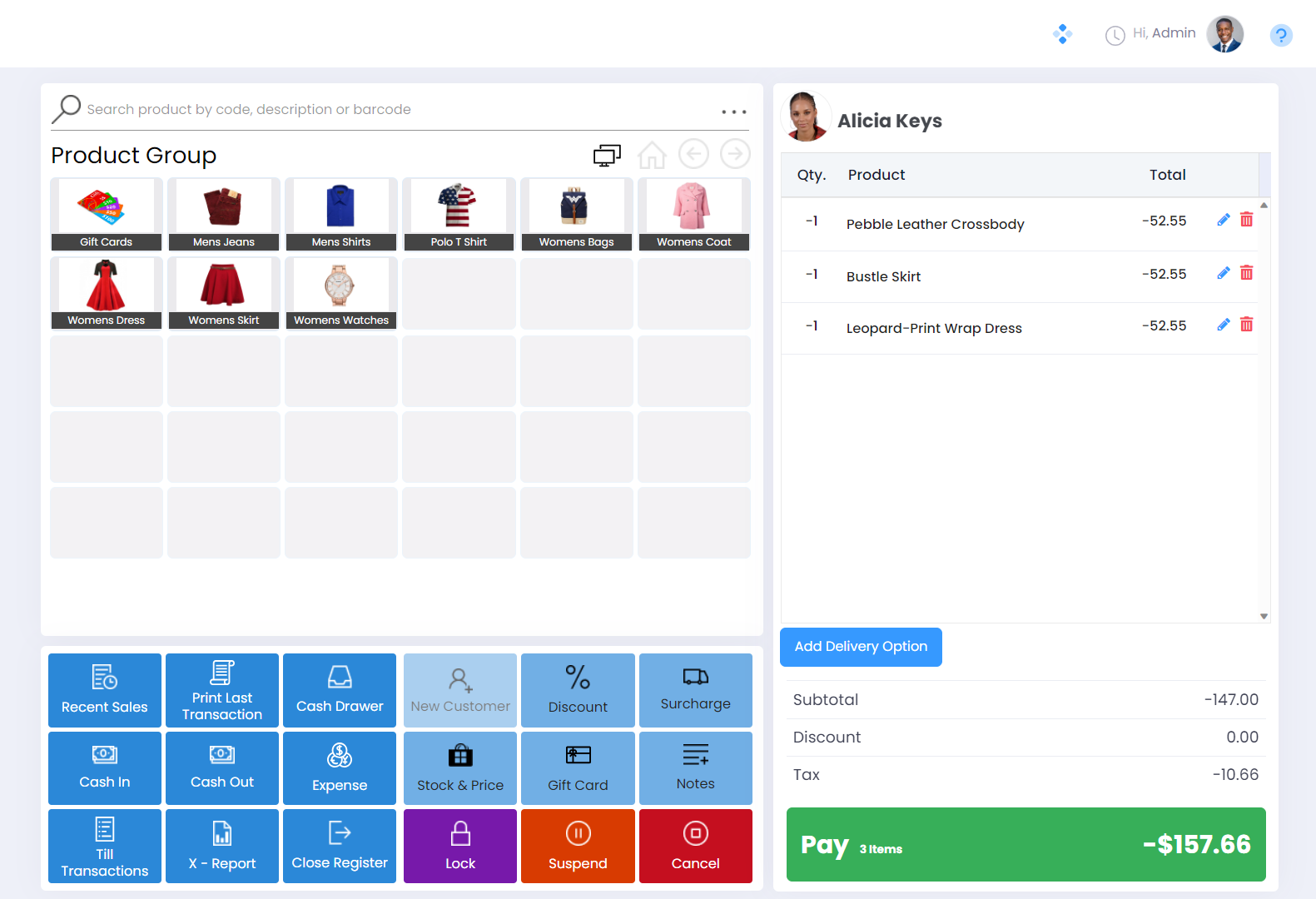 Click the Pay button on the Refund Transaction screen to reach the Payment screen