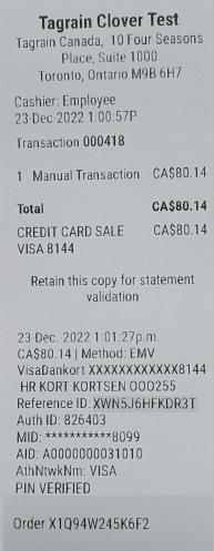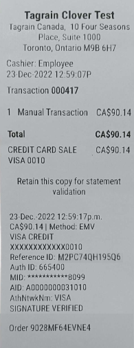 In the scenario that we just mentioned, where the payment has been made using 2 different credit cards, the Clover Device will print 2 separate receipts.