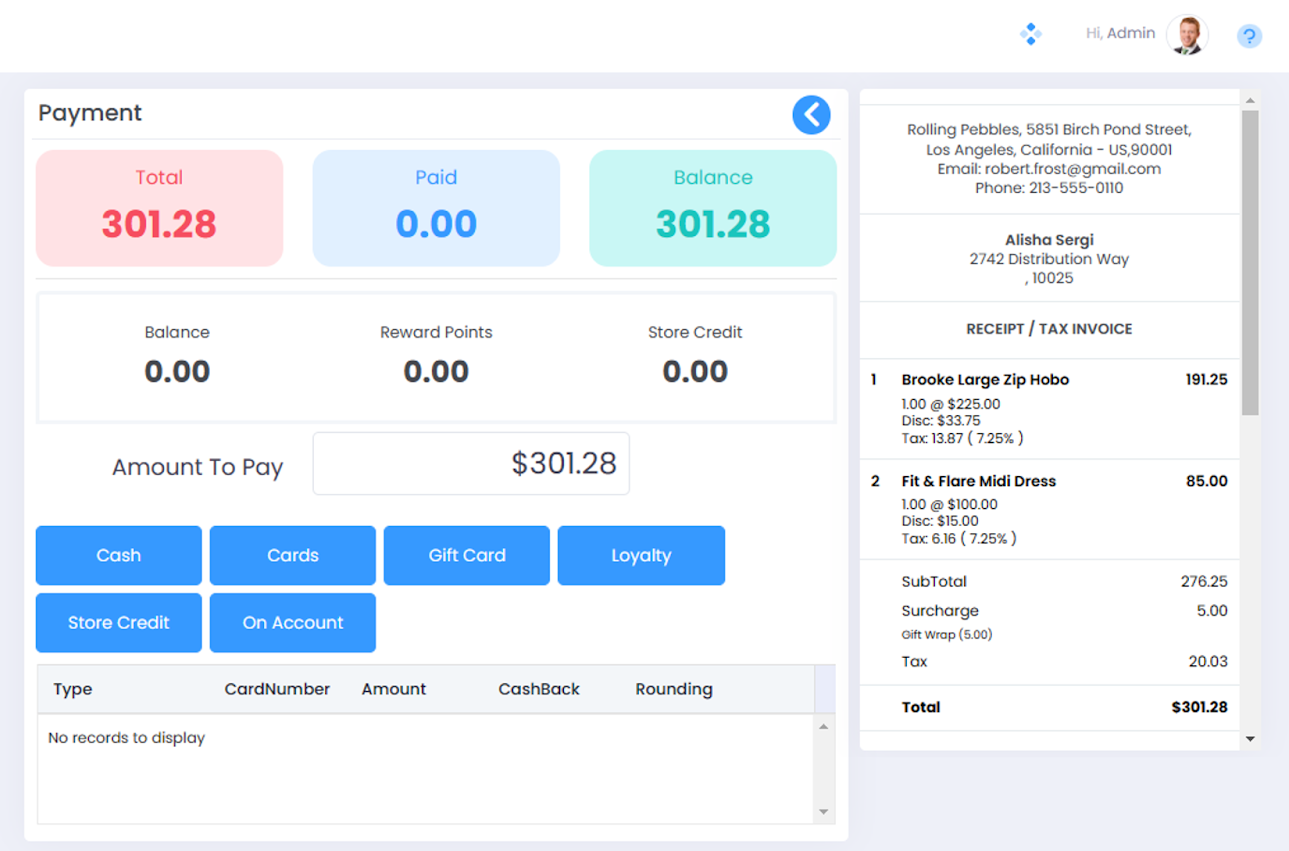 Upon successful integration, cashiers can take credit and debit card payments from customers at the POS. This integration helps your cashier save the hassle of manually entering the amount and card details at the POS.