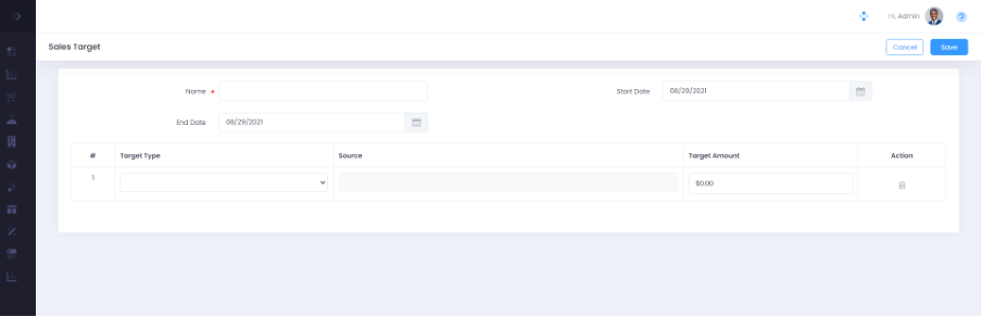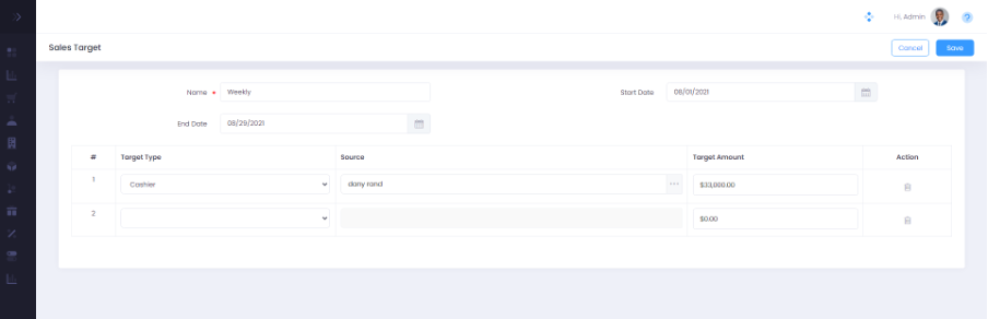 Once you have completed setting up the sales target, you can either select the save icon to save it to the system or cancel it to return to the Sales Target List View screen.