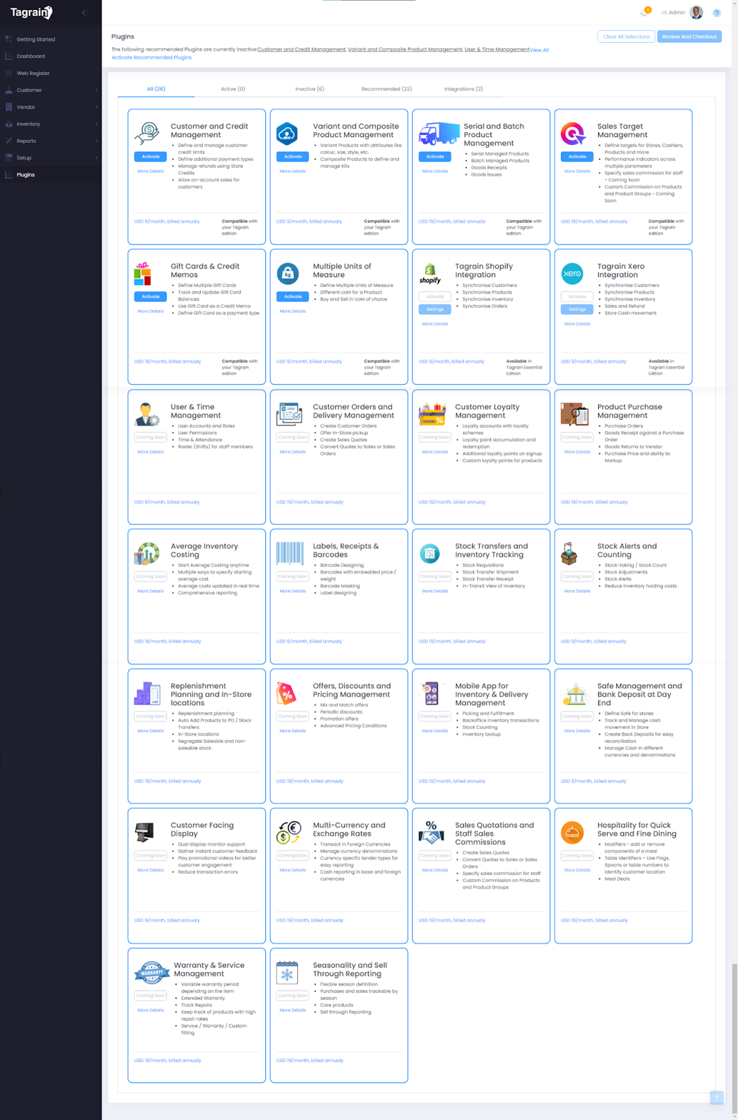 Click here to know more about Subscription Management in Tagrain which explains in detail the journey and the process to activate the plugins.