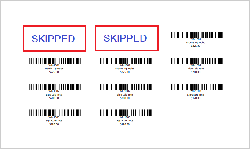 When you set 1 as the Skip Label Count value and give the Print command, the printer will start printing the Labels from the 2nd grid, skipping the 1st grid. This can be well seen in the Print Preview section.