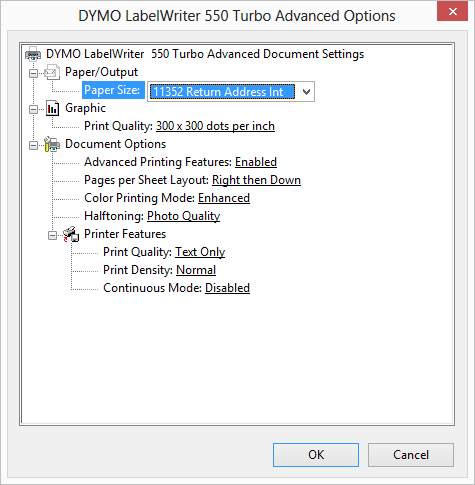 Click the Advanced button on the Dymo Printer Preferences screen to open the Dymo Printer Advanced Options