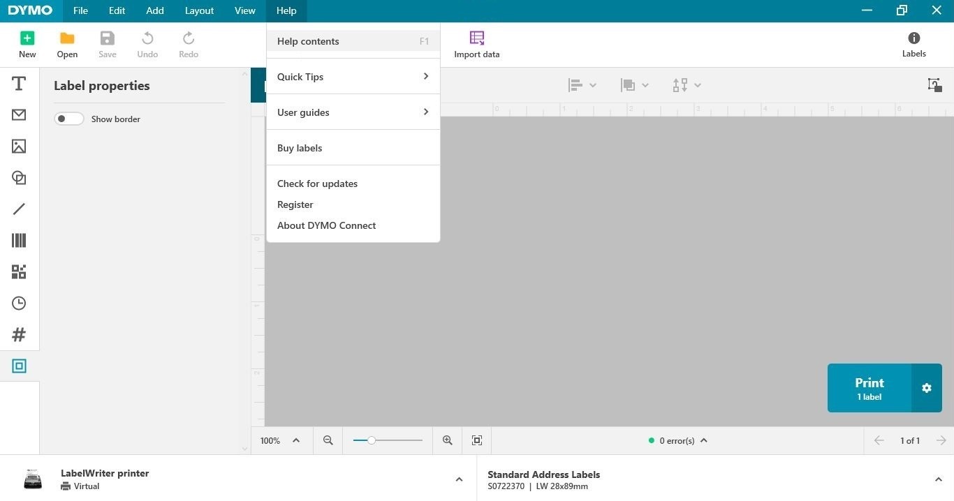 Launch the DYMO Connect for Desktop Labeling software. Click Help Contents > Check for Update, and download the latest version. Alternatively, you can download the newest version of DYMO Connect here.