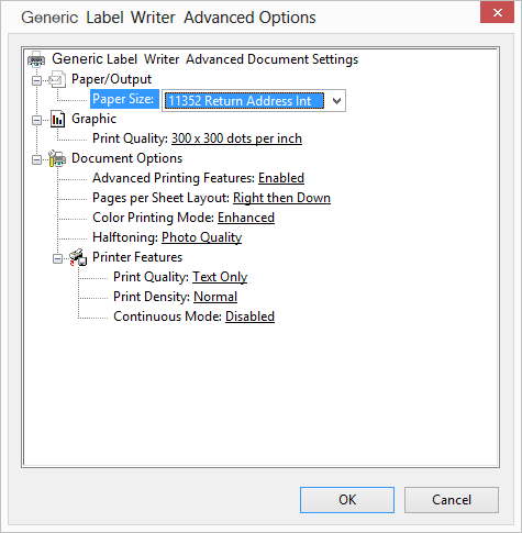 Click the Advanced button on the Generic Label Printer Preferences screen to open the Generic Label Printer Advanced Options