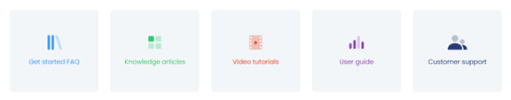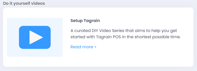 This portion of the Getting Started page allows you to access the following sections on the Tagrain Help Portal: